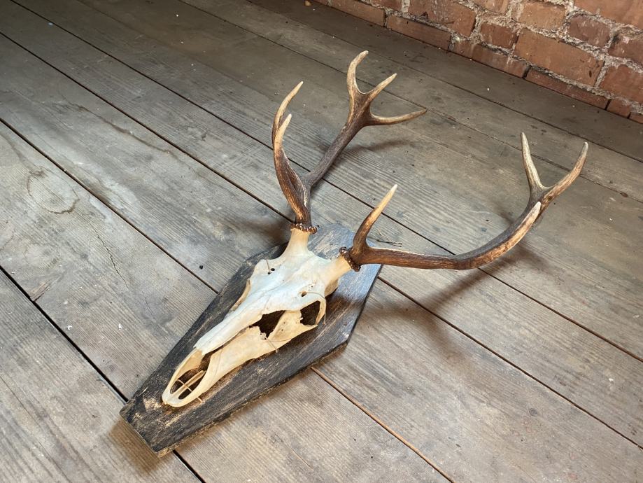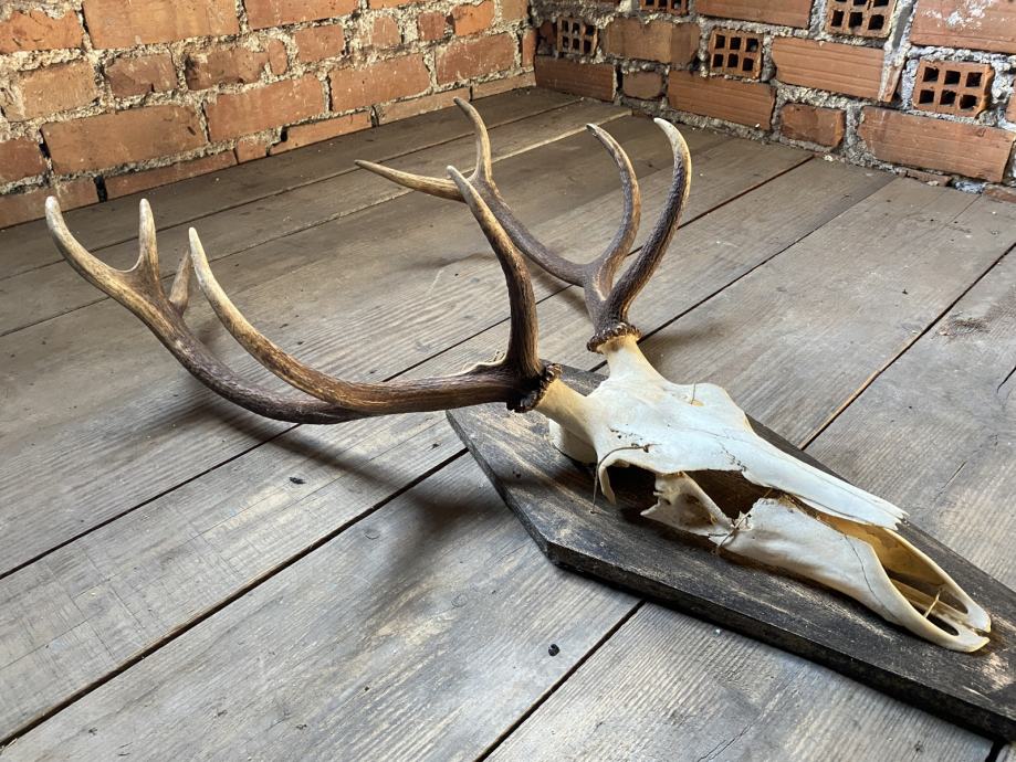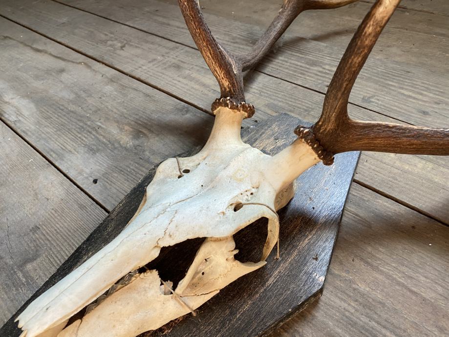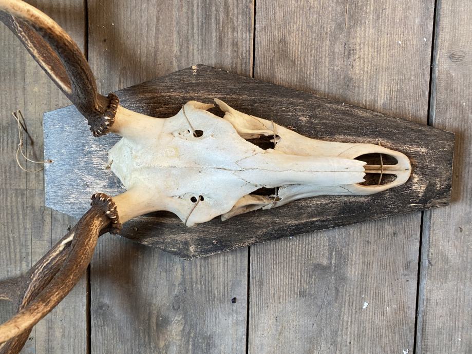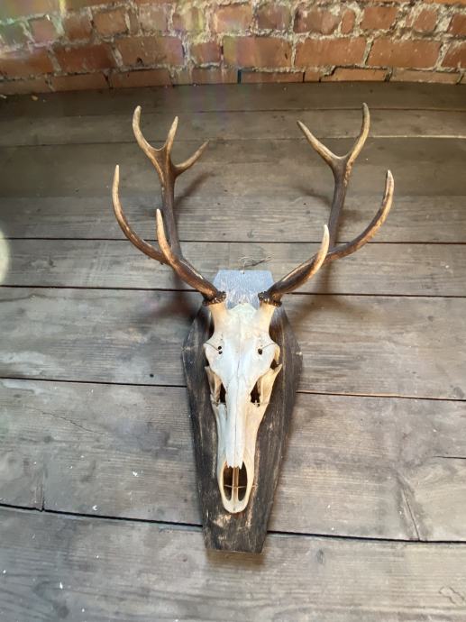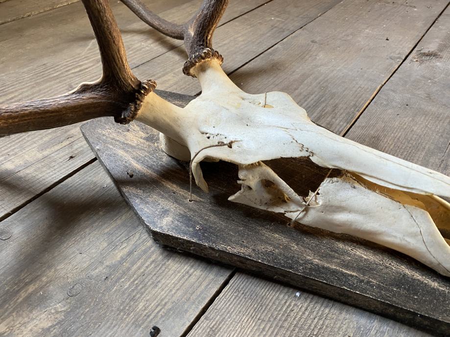 Glava kosti je nekoliko počena /zlepljena skupaj zato je tudi na leseni podlagi.