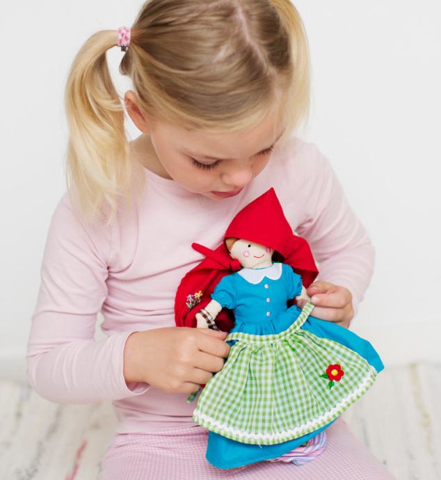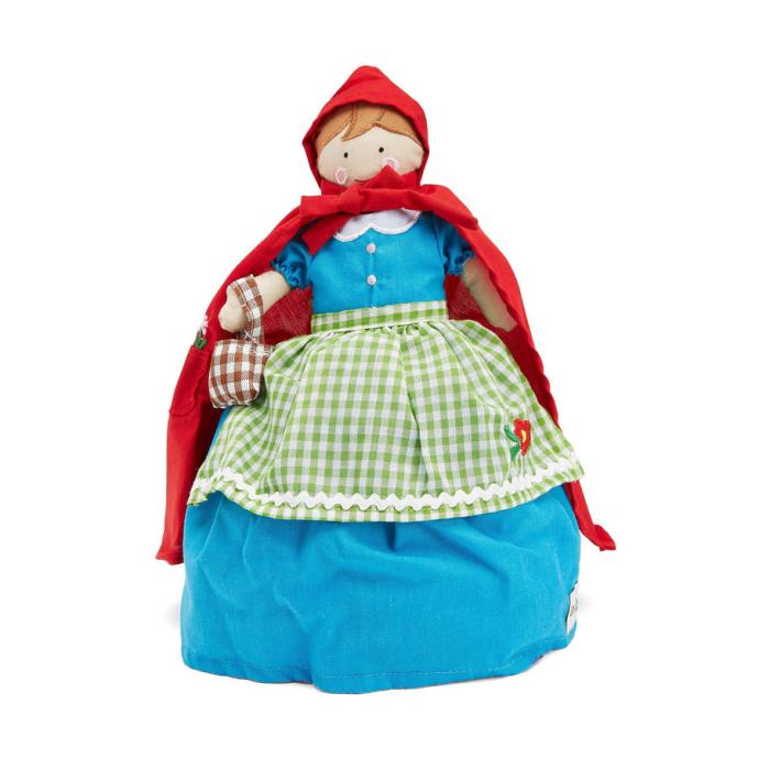 Ta čudovita ročno izdelana lutka bo pričarala popolno zgodbo o Rdeči kapici. Obrni Rdečo kapico in spoznaj še njeno babico. Obrni babičino čepico in tako bo v zgodbo prišel tudi Velik hudobni volk. Za rdečim ogrinjalom pa najdeš tudi lovca. Lutke imajo prisrčne detajle kot so rožice v žepku Rdeče kapice in ljubek predpasnik, ki ga lahko odstraniš, prav tako tudi rdeče ogrinjalo.