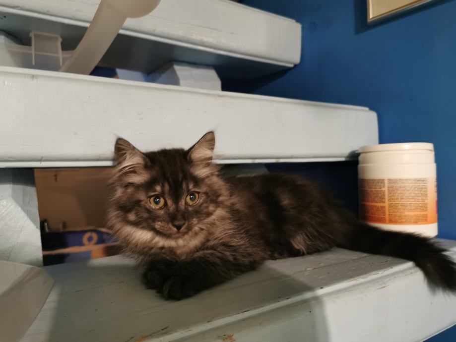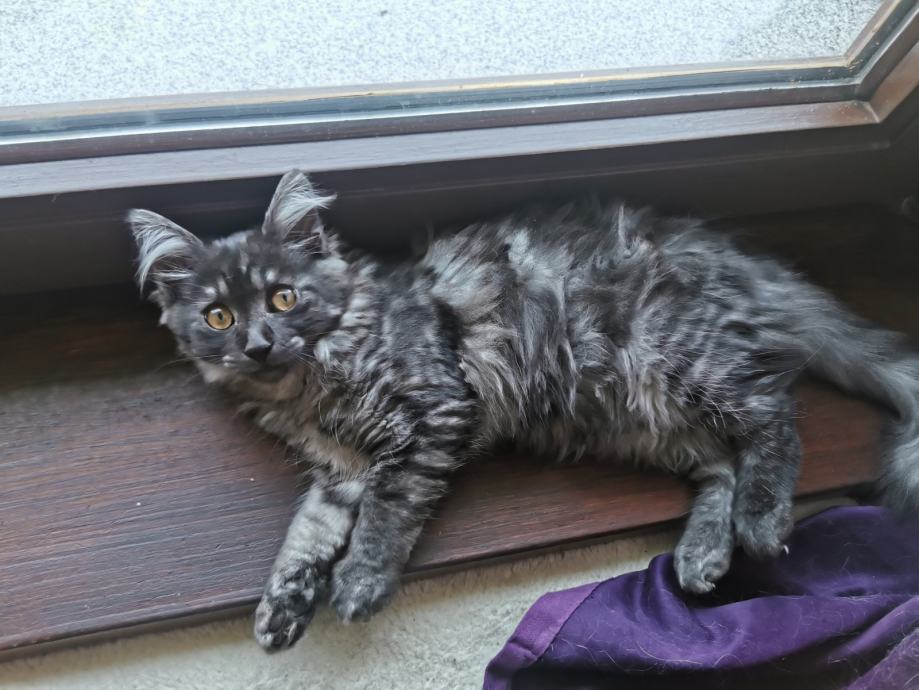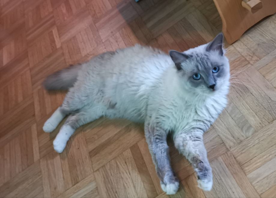 Mladički živijo s staršema: oče čistokrven ragdoll, mama mešanka med maine coon in norveško gozdno mačko. Je med zadnjimi legli, ki jih bosta imela ta dva starša.