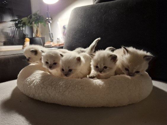 V začetku novembra so nas razveselili čudoviti nežni, puhasti, cartljivi in igrivi Ragdoll mladički, z značinimi lepimi modrimi očmi, mirnega in hkrati razigranega značaja, prijazni in zelo navezani na lastnika, kar je značilnost te pasme.