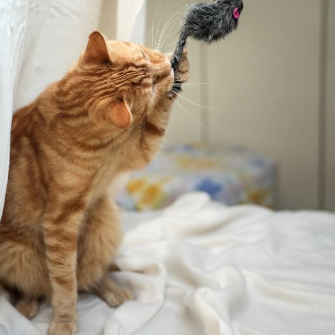 Od malega je navajen sobivanja z drugimi mucami, zato se z njimi odlično razume. Je FIV pozitiven, a zaenkrat brez kakršnihkoli simptomov, kar ne vpliva na njegovo zdravje. Je vesel, igriv in pravi mačji car. Preden se je njegova prijateljica Mayla oddala, jo je rad crkljal in ji nudil občutek varnosti, saj je bila zelo plaha. Zdaj večino časa preživlja v družbi svojega zabavnega cimra Perice, s katerim se redno igra in lovi igračke kot pravi profesionalec.