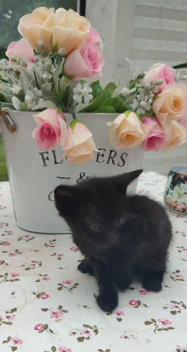 Mala igriva in cartljiva črna mucka vajena igre z otroki, drugih živali, bivanja v hiši in uporabe mačjega wc išče novi dom. Željen prispevek 88 EUR za hrano za živali, več info in rezervacije pokličite 069649088
