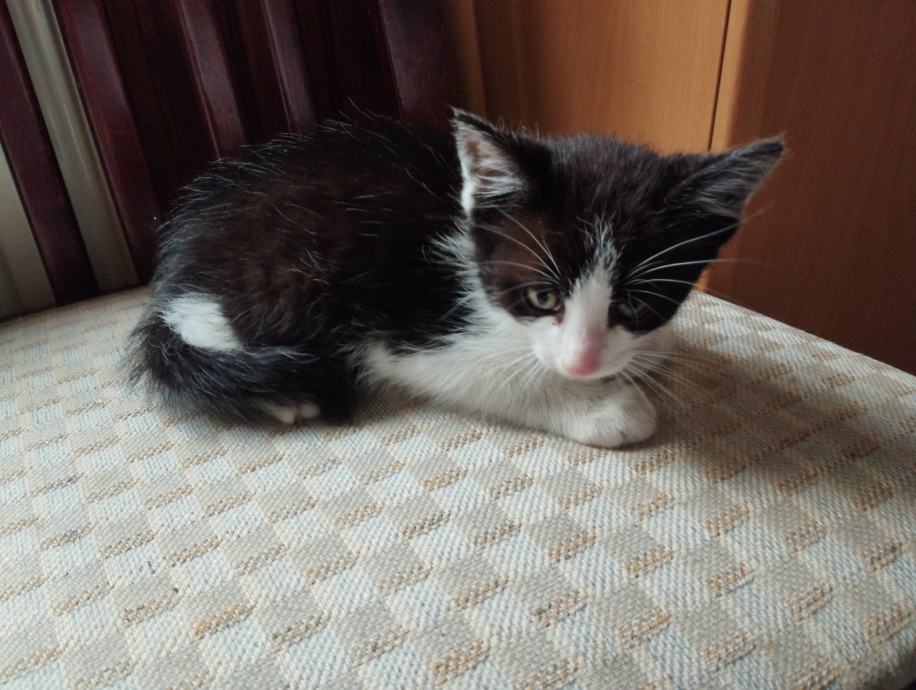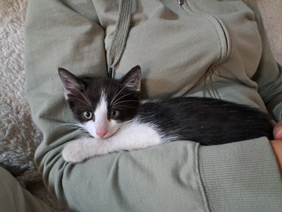 Podarimo samcka, dolgodlakega, crno bele barve. Je zelo igriv in radoveden.