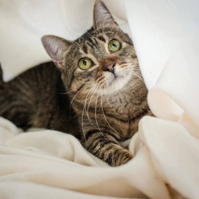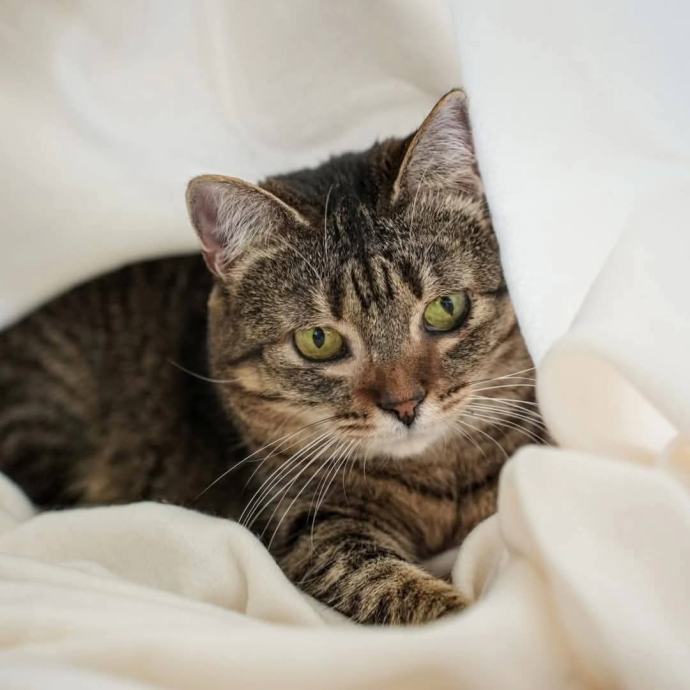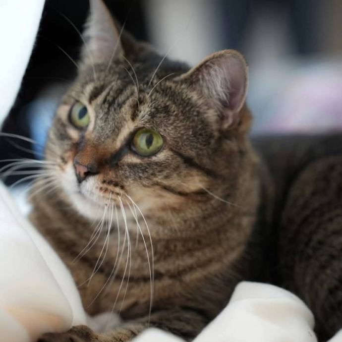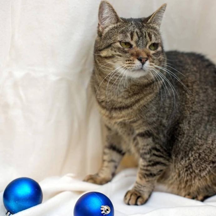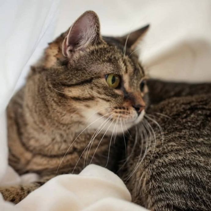 Taka je naša Olivera – stara 4 leta, rešena z obale Mrežnice, kjer je lovila. Prišla je z poškodovanim očesom, ki smo ga uspeli rešiti (vendar ji še vedno solzi in bo tako tudi ostalo). Rada ima družbo drugih muc, prijaznih in mirnih psov pa se ne boji. A najbolj od vsega obožuje človeške roke, ki jo nežno božajo v varnem zavetju doma, brez odhajanja na prosto.