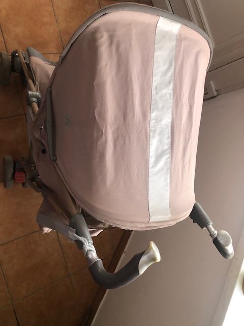 zelo dobro ohranjen bež voziček, brez napak, s podlogo, z zimsko vrečo, komarnikom in PVC zaščito pred dežjem, odsevniki na kolesih, strehi, zelo vodljiv in mehek, iz Anglije, nič pet-ena-tri-stiri-pet-pet-nula-stiri
