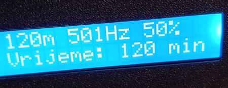 Možnost nastavitve časa delovanja od 5 minut do 120 minut. Nastavitev frekvence od 5 do 500 Hz.