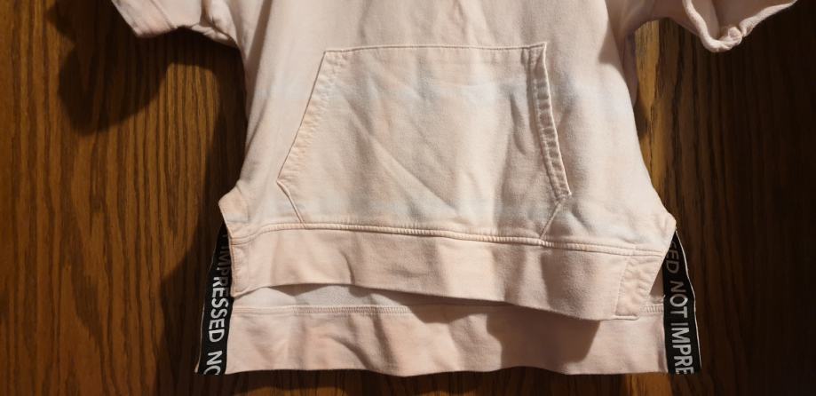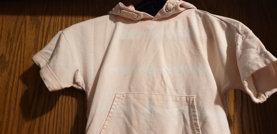 Dekliška majica s kapuco, št. 146/152, kratek rokav, bele in marelične barve
