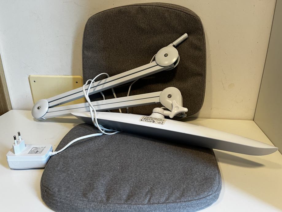 Glava luči je nastavljiva; stransko 360 stopinj, do 180 stopinj in vrat se lahko nastavi za 180 stopinj. Lahko se fiksira in pritrdi na mizo.