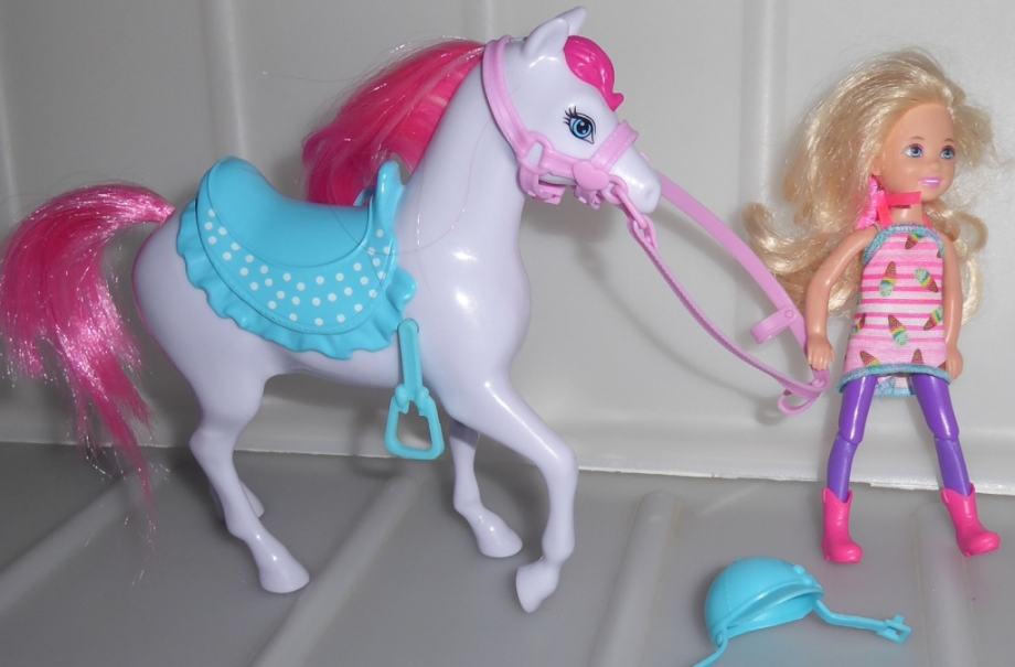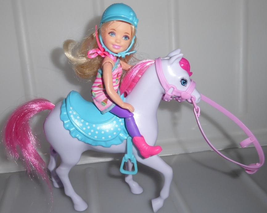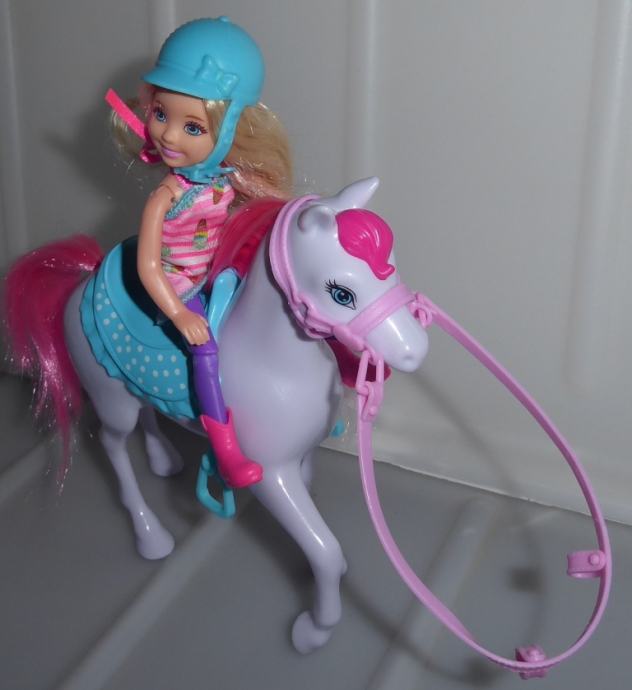 Mattel Barbie Chelsea se rada odpravi na ježo s svojim ponijem. V svoji prikupni odpravi za jahanje in z lepo turkizno čelado odjezdi v svet domišljije in zabave. Ni primerno za otroke mlajše od 3 let.