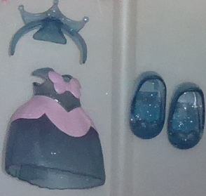 - prozorno modro "stekleno" oblekico, ujemajoče "steklene" čeveljčke in tiaro-krono,