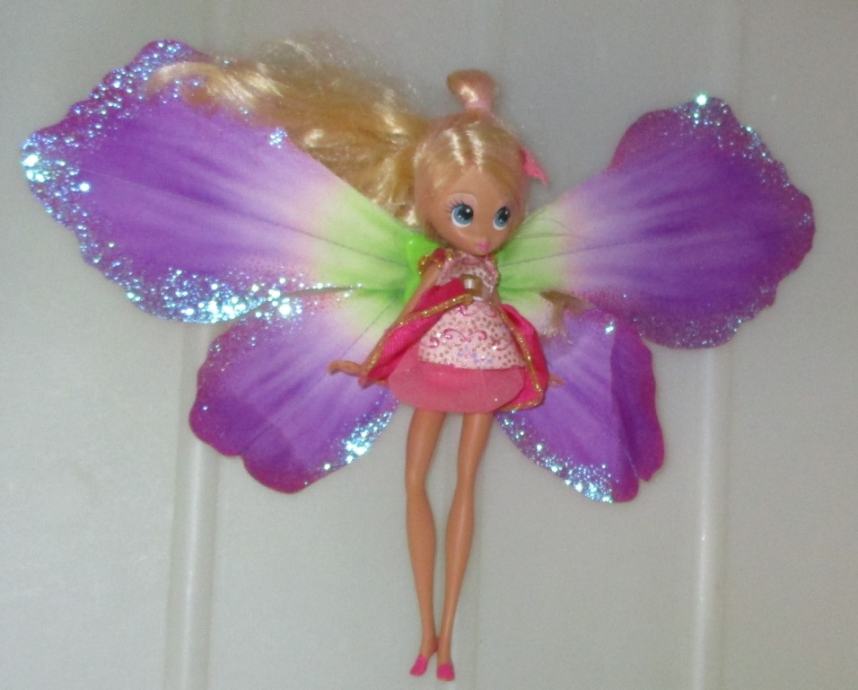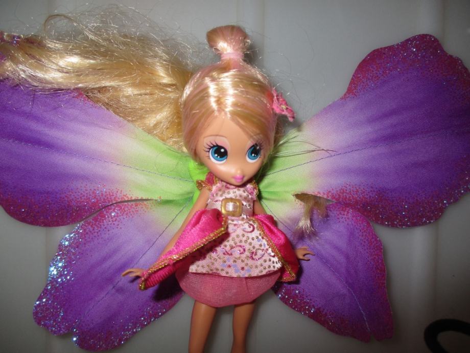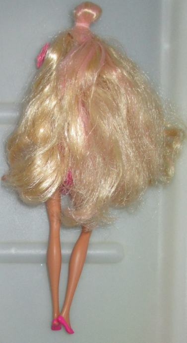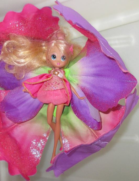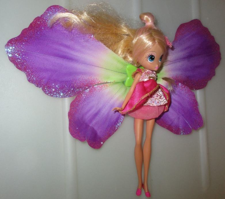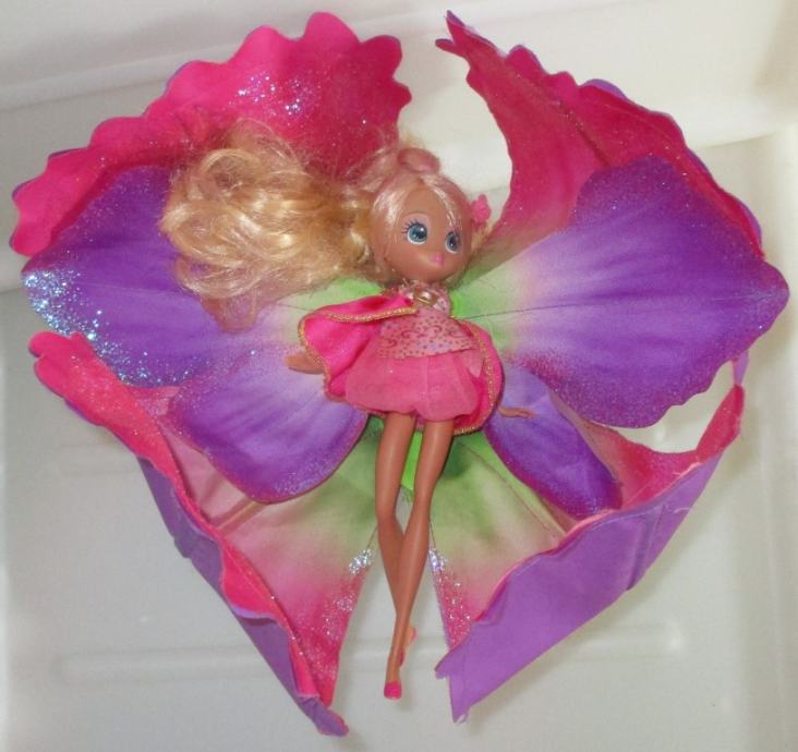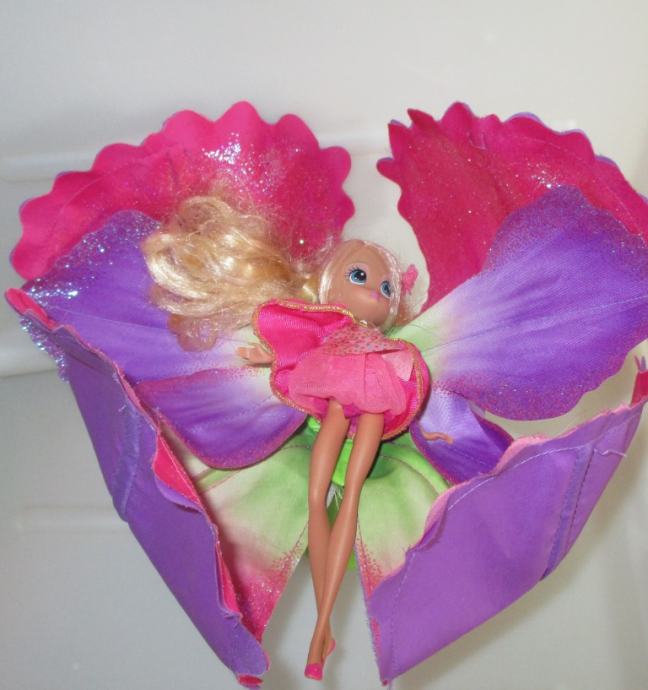 Čudovita, zelo redka mala barbika, original Mattel s svetlimi lasmi in roza prameni, Disney Palčica iz risanke. Zelo lep obraz - glejte slike. Odlično ohranjena. Nosi lepo original večslojno oblekico in narisane čeveljčke ter rožico v laseh. Zraven ima tudi krilca, ki pa se lahko snamejo (kot je vidno na fotografijah). Brezhibna. Ima zelo lepe, valovite lase. Res je čudovita.