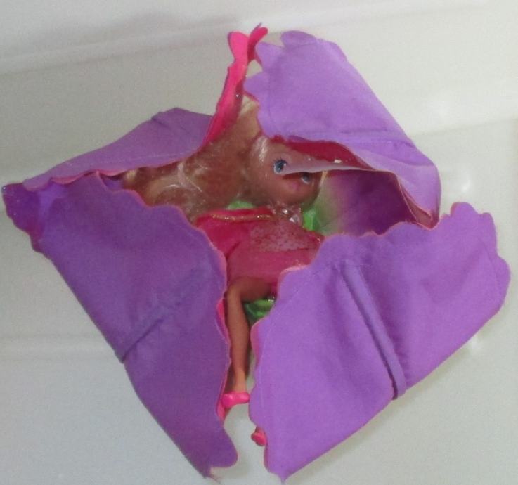 V kompletu je tudi rožica, v kateri Thumbelina barbika spi. Cvetni listi se zapirajo in odpirajo s pomočjo mehanizma - za delovanje ne potrebuje baterij.