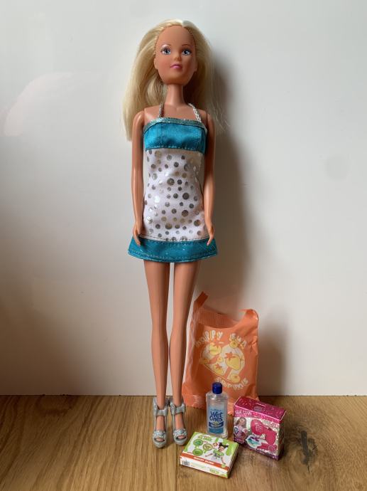 Prodam punčko Steffi z oblačili in čevlji. Je zelo lepo ohranjena, nepoškodovana. Zraven dobite mini nakupovalno vrečo in nekaj miniaturnih dodatkov (vidno na sliki).