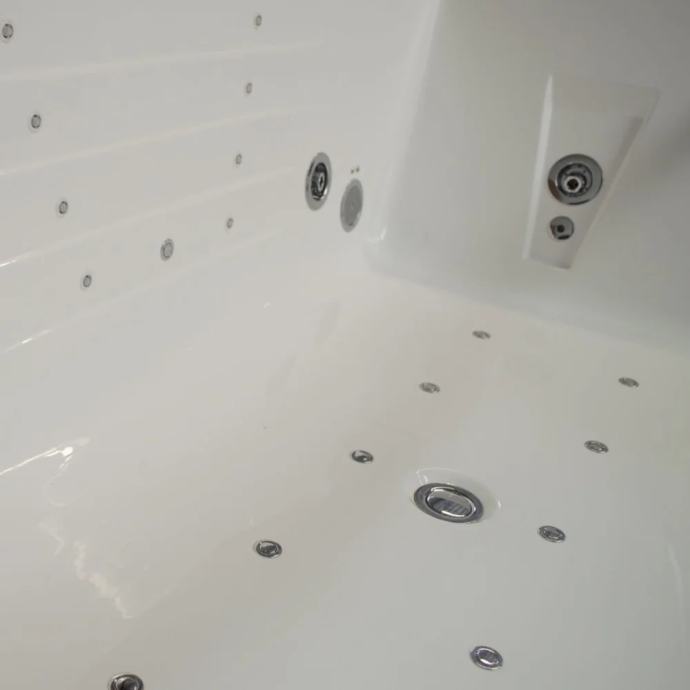 Hidromasažne kadi TroniTechnik so izdelane iz visokokakovostnega sanitarnega akrila (visoko stisnjenega) in ojačane s podnožjem iz steklenih vlaken. Izbrali smo ekstra močan (3,8 mm!) sanitarni akril, ker je trdnost akrila ključnega pomena za stabilnost in vzdržljivost površine kopalne kadi. Debelejši akrilni sloji nudijo tudi prednost boljše izolacije. Ta material uporabljamo v vseh naših notranjih masažnih kadeh in zaradi njegovih lastnosti, ki jih ni treba vzdrževati (gladka površina), so naše kadi tudi enostavne za čiščenje.