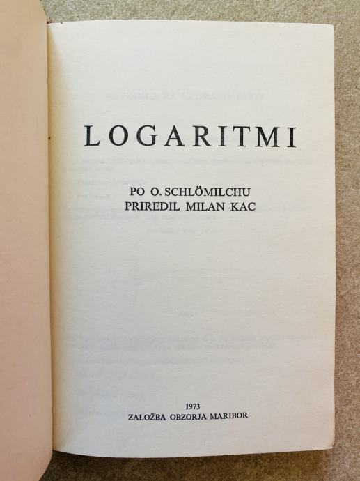 Prodam odličen priročnik LOGARITMI po O. Schlömilchu, Milan Kac, ki Vam bo v izredno pomoč pri učenju + priprava na maturo!