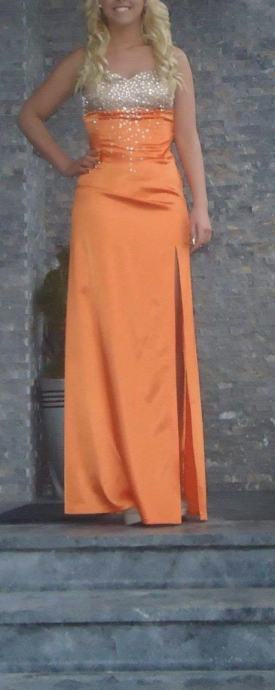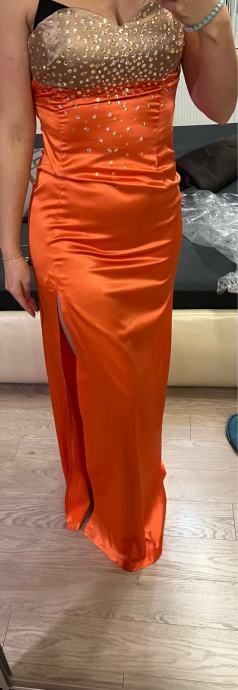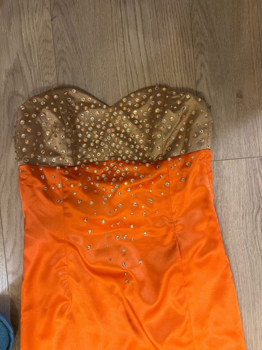 Ročno izdelana (pri šivilji) obleka s swarovskimi kristali. Oblecena en vecer 2 uri. Primerna za velikost S oz 36.
