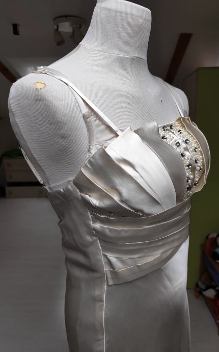 Praktično nova, nič poškodovana. S podlogo. Raztegljiva. 97% poliester, 3% elastan. Kremno bele barve.