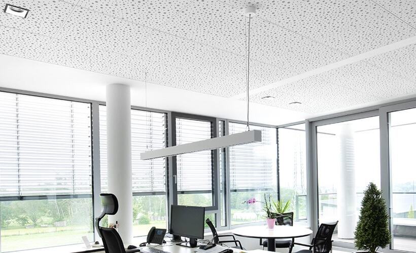 Knauf Cleaneo plošča za uravnavanje akustike v prostoru (da ne doni) in čistilni efekt (čisti zrak v prostoru).