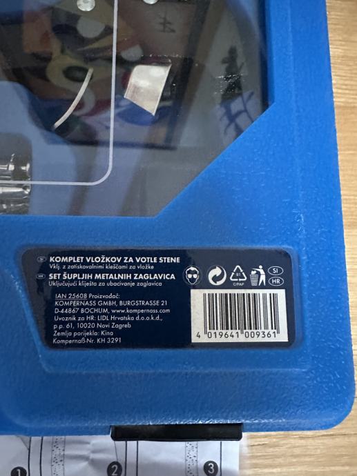 Prodam NOV set kovinskih vložkov za votle stene z montažnimi klešči.