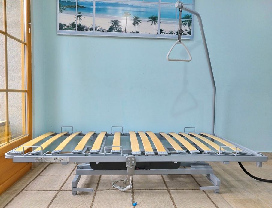 Ležišče je pritrjeno na izredno čvrstem podnožju, s stabilnim križnim mehanizmom ki omogoča varno in enakomerno dvigovanje, ter spuščanje ležišča. Takšna konstrukcija zagotavlja dolgo življenjsko dobo, visoko nosilnost ter zanesljivo uporabo pri vsakodnevni domači negi.