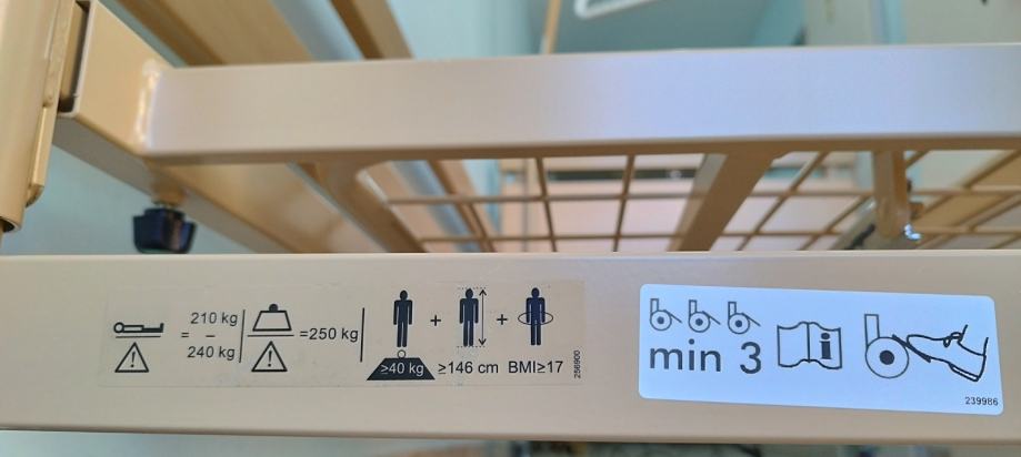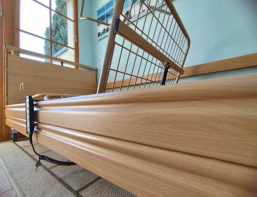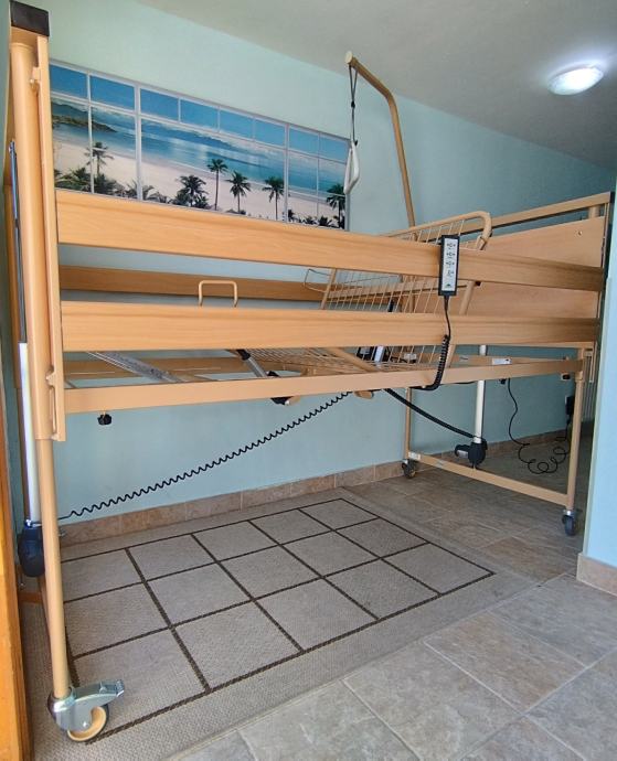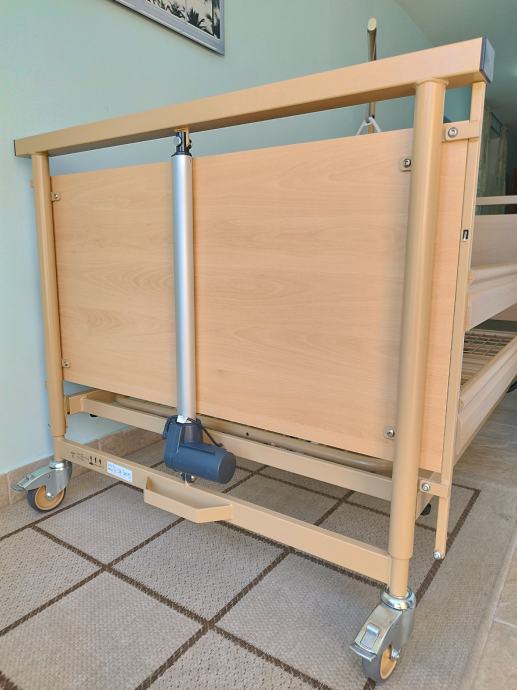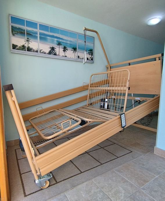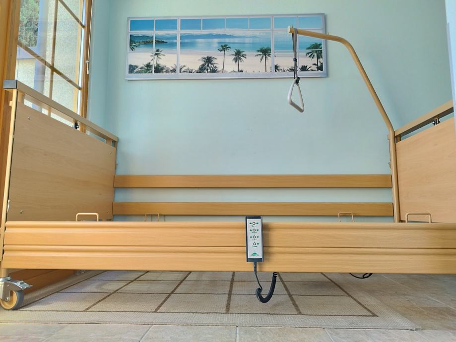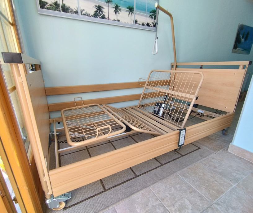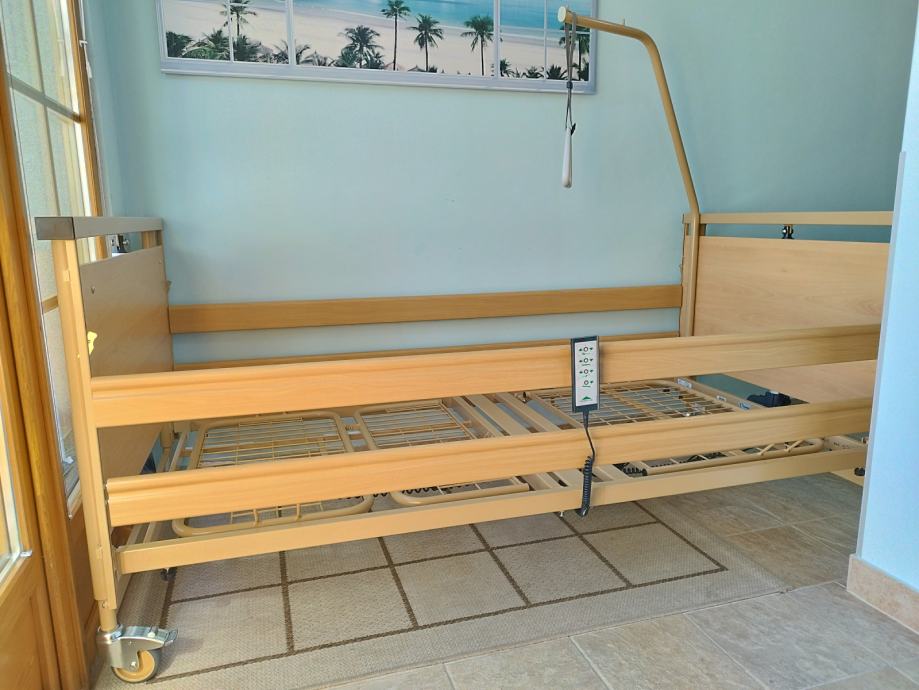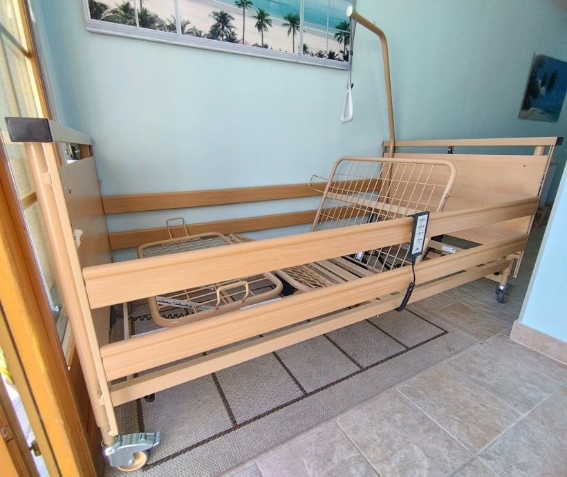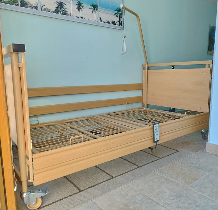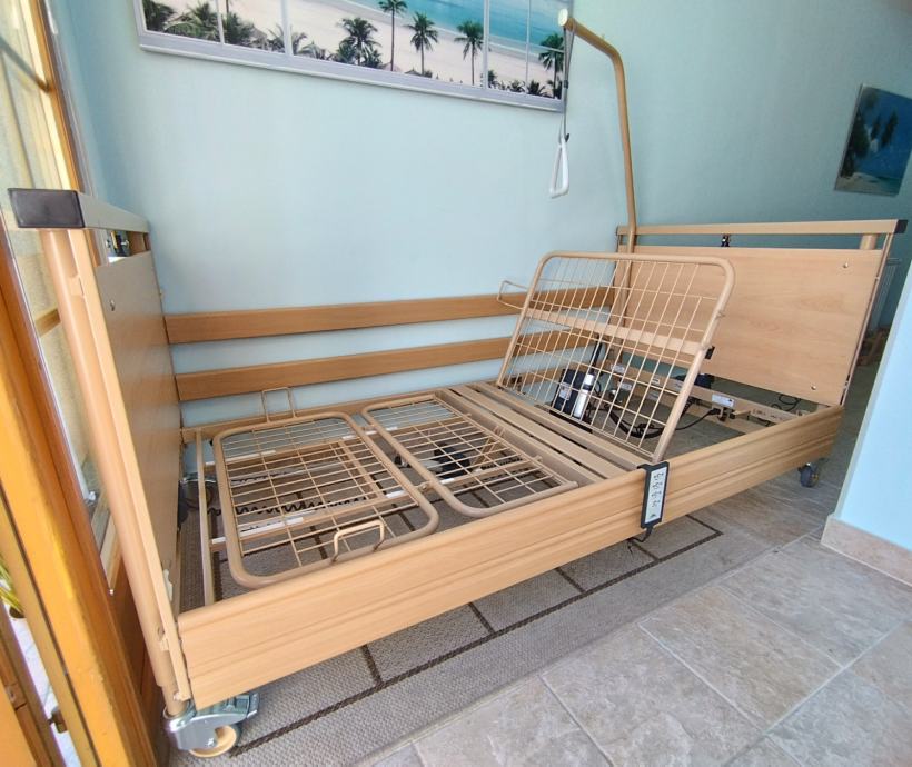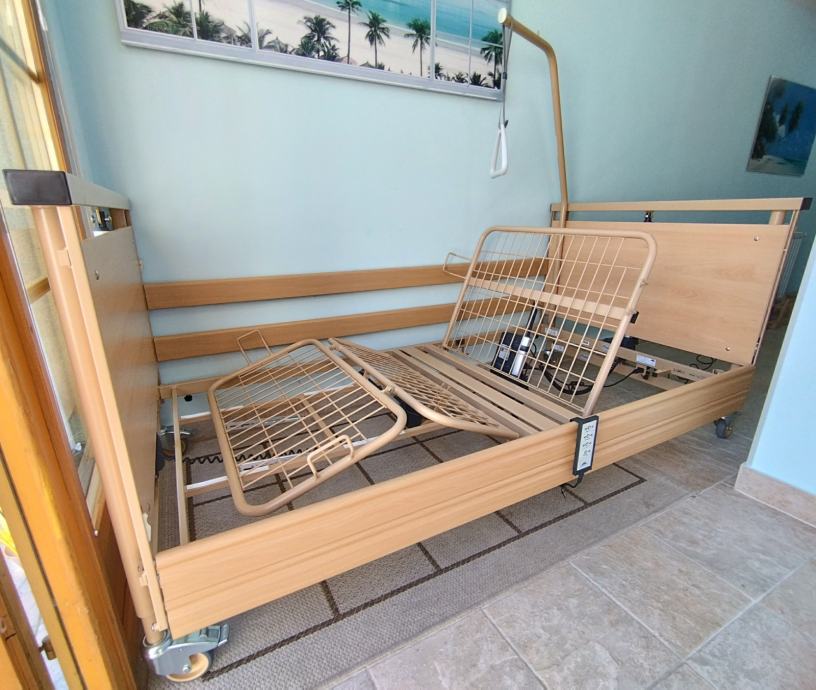 Odlično ohranjena in visoko kakovostna, nizko vstopna električna bolniška postelja, z nizkonapetostnim (24V) napajanjem in s priloženim trapezom in trikotnikom za dvig. Z nastavljivo višino ležišča od 30cm do 80cm od nivoja tal.