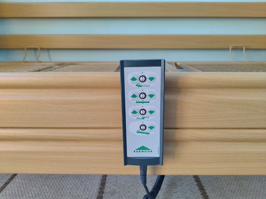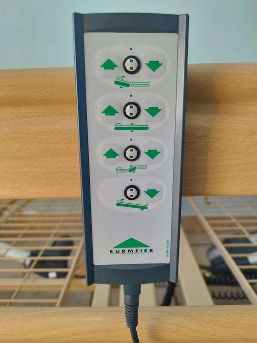 Postelja priznanega nemškega proizvajalca Burmeier, najnovejši model "Allura II", ki je robustnega dizajna s povišano nosilnostjo in spada v serijo negovalnih postelj višjega cenovnega razreda. Ležišče je izdelano štiridelno, ki je primerno za vložek s širino 100cm in dolžino 200cm.