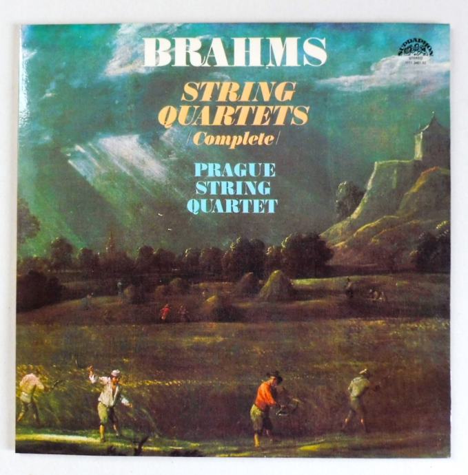 Na ploščah so trije godalni kvarteti Johannesa Brahmsa, znamenitega skladatelja iz obdobja romantike. Izvaja jih Praški godalni kvartet. Obe plošči, ki jih je izdala diskografska hiša Supraphon, sta brez poškodb in odlično ohranjeni. Tudi ovitek iz lakiranega kartona je nekaj posebnega. Na notranji strani ovitka je v štirih jezikih obširen opis glasbenega obdobja romantike, življenje in delo skladatelja Johannesa Brahmsa, ter predstavitev izvajalcev iz Prage. Cena 25 eur + poštnina 3,60 eur.
