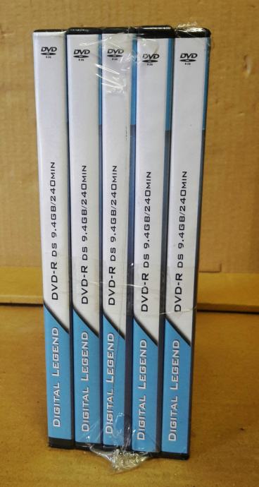 Prodam 5 kom. povsem novih DVD-R DOUBLE SIDED velikosti 9.4 GB 240 min in original zapakirano. Cena 15e