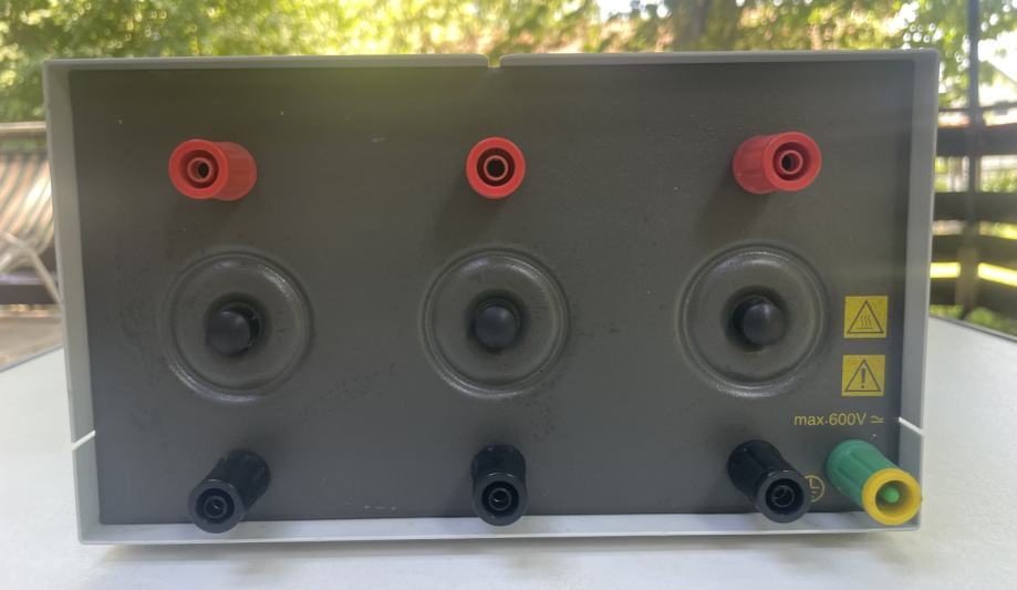 Upor je sestavljen iz treh drsnih uporov 3,3 Ohm, katerih vrednost je nastavljiva z enim drsnikom.Obremenimo jih lahko z tokom do 10A (kratkotrajno tudi z 14A).Skupna obremenilna moč je torej do 1000W.