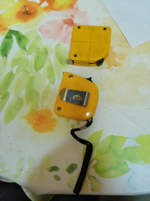10 meterski, širina traja 3.1cm, z dvema sistemoma za ustavljanje traku(trenutni, stalni), s trakom in zaponko za nošenje za 7€.