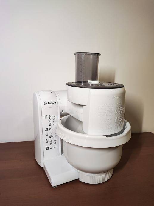 Kakovostni mešalnik s 600 W motorjem Multi Motion Drive s štirimi delovnimi hitrostmi ter s pozicijo parkiranja, priznanega proizvajalca Bosch. Ponaša se z večnamensko ročico s tremi pogoni na različnih legah, tukaj pa je tudi plastična mešalna posoda s prozorno modrim pokrovom z režo za dodajanje sestavih, ta pa premore mešati do 1 kg moke ali 2,7 kg testa. Tukaj je tudi metlica za gnetenje, mešanje in stepanje ter mešalni 1 l plastični vrč in nosilec za pribor.