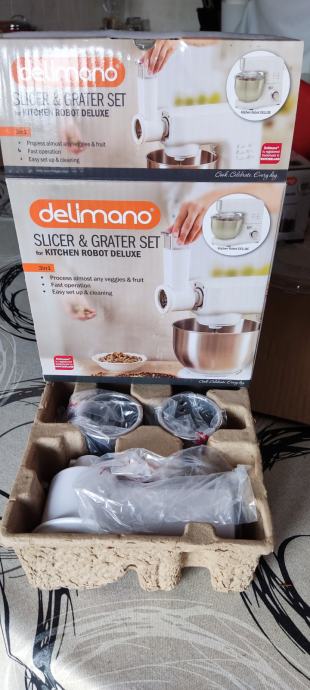 Po simbolični ceni prodam priključke za kuhinjski robot: blender, priključek za mletje orehov, za mletje mesa in izdelavo testenin. Vse je razvidno iz fotografij. Vse je novo, neuporabljeno. Kupljeno leta 2020.