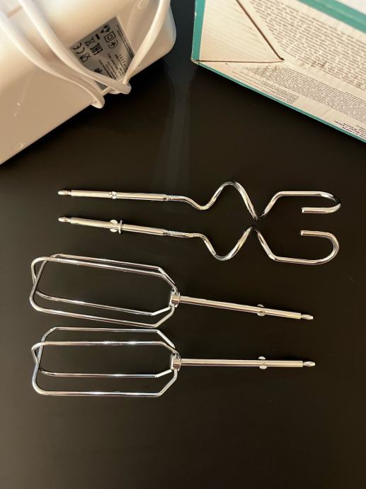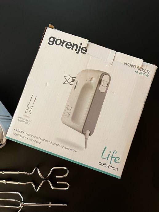 Prodam ročni mešalnik Gorenje M 420CW, je kot nov (zgolj dvakrat uporabljen). Zraven sta prišla dva tipa metlic - za stepanje smetane in za gnetenje testa. Izdelek prodam v original pakiranju s priloženimi originalnimi navodili za uporabo.