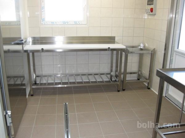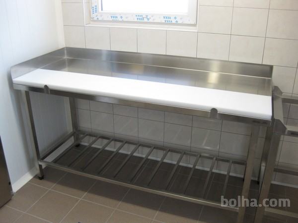Inox miza za izkoščevanje s polietilen desko debeline 30 mm.