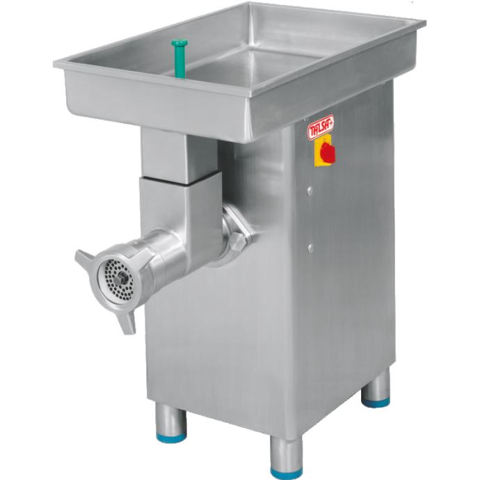 Stroj za mletje mesa, svetovno znanega, španskega podjetja TALSA. Vrhunski stoj s kapaciteto mletja 1200 kg/h. 5 Unger sestav rezil (predrezilo, nož, sito, nož, sito) Mesoreznica je opremljena z 52 lit. nasipnico. Specialna visoko kavostna rezila nemškega podjetja Lumbeck & Wolter L&W. Nova generacija motorjev z boljšo energetsko učinkovitostjo, brez pregrevanja in z zelo tihim delovanjem. Elektronika Merz (Nemčija)