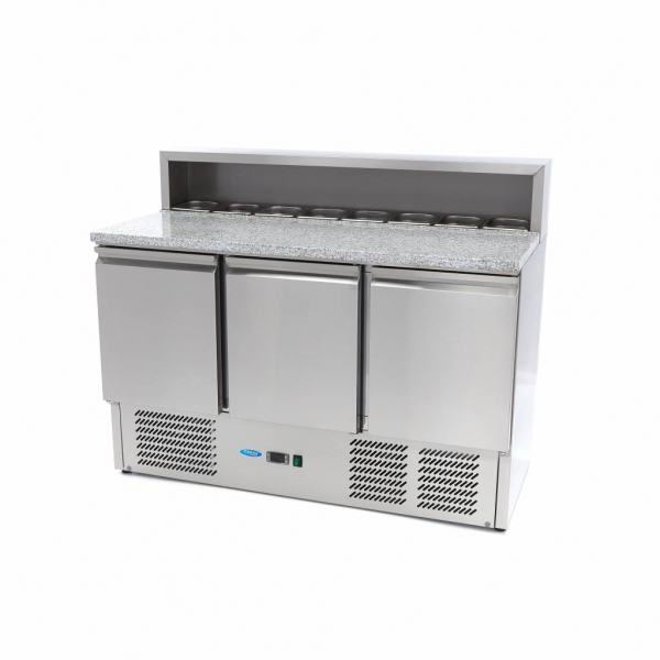Luksuzni pizza pult z inox ohišjem in granitno delovno površino. Volumen 8x1/6 GN posodic.