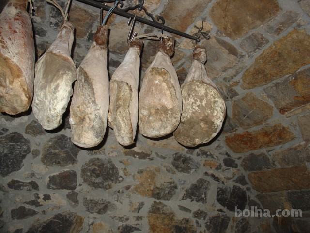 Pršut domač sušen na vipavski burji prodam.Pršut je konzerviran samo z grobo morsko soljo, sušen na vipavski burji in dozorjen na domači kmetiji. Teža pršuta je približno 9,4 kg. Cena je za kg
