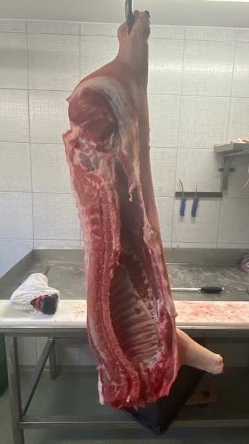 Prodam 40-60kg težke svinjske polovice brez glave in kože s slanino.