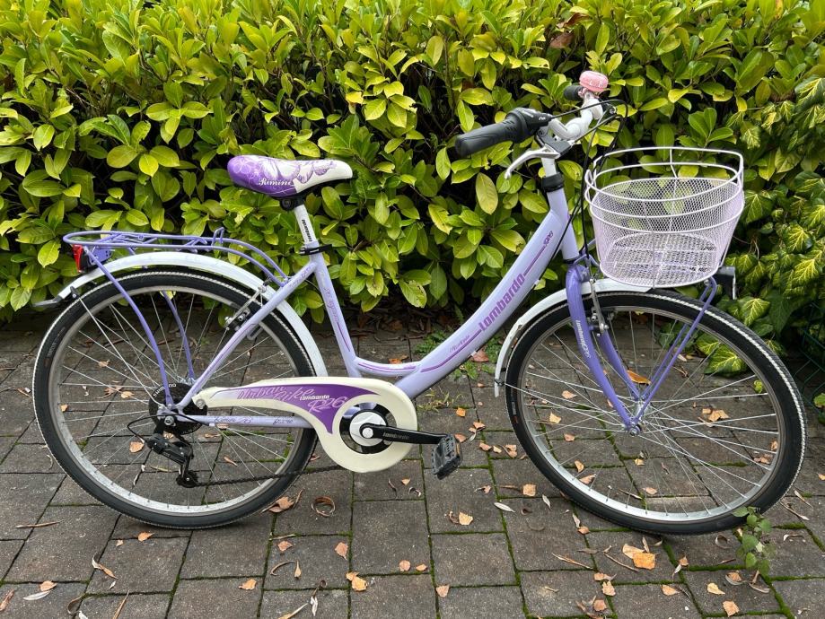 Prodam rabljeno dekliško oziroma žensko kolo s 26-colskimi obroči in XS velikostjo okvirja. Mestno kolo je v vijoličnem odtenku, opremljeno s košarico in udobnim sedežem. Idealno za vsakodnevno vožnjo po mestu in okolici. 6 prestav. Lombardo, Rimini.