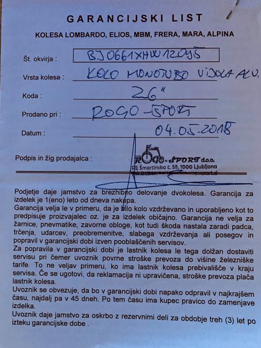 Prodam kolo Monotubo viola 26. Potreben servis.