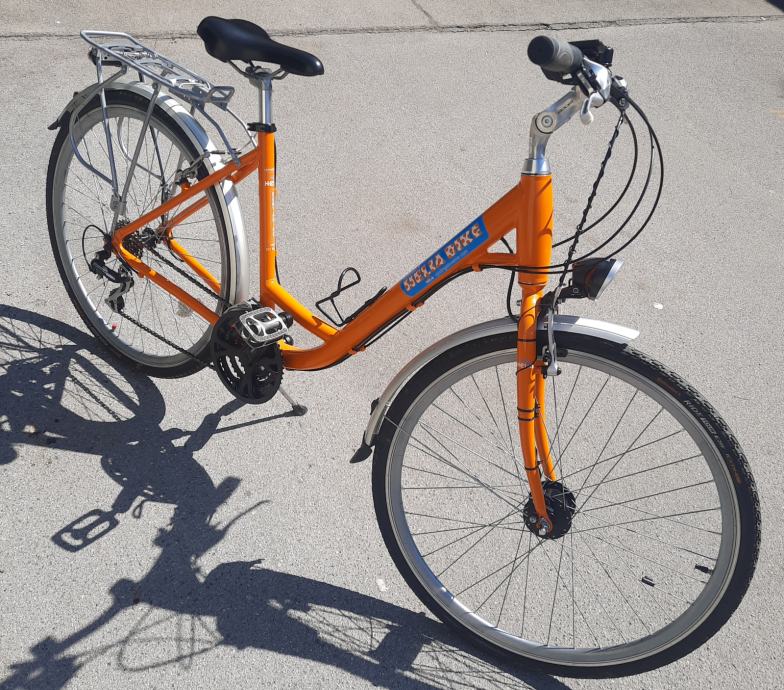 Prodam malo voženo cca 250km odlično ohranjeno brez odrgnin novo,žensko kolo 28" col,zelo lahek močan okvir iz aluminija, 24 prestav sprednja in zadnja led luč se napajata z elektriko iz dinama ki je vosi sprednjega kolesa,nove gume Continental z zaščito proti predrtju,ojačana dvojna alu platišča,alu prtljažnik z nosilnostjo do 25kg,sigma števec,dokazilo o lasništvu račun,prosim kličite ali pišite samo resni,