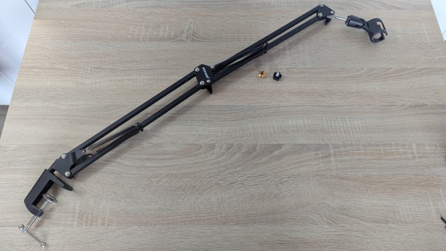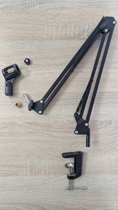 Pop filter iz slik ni priložen. Vsi original dodatki zraven mikrofona so prisotni.