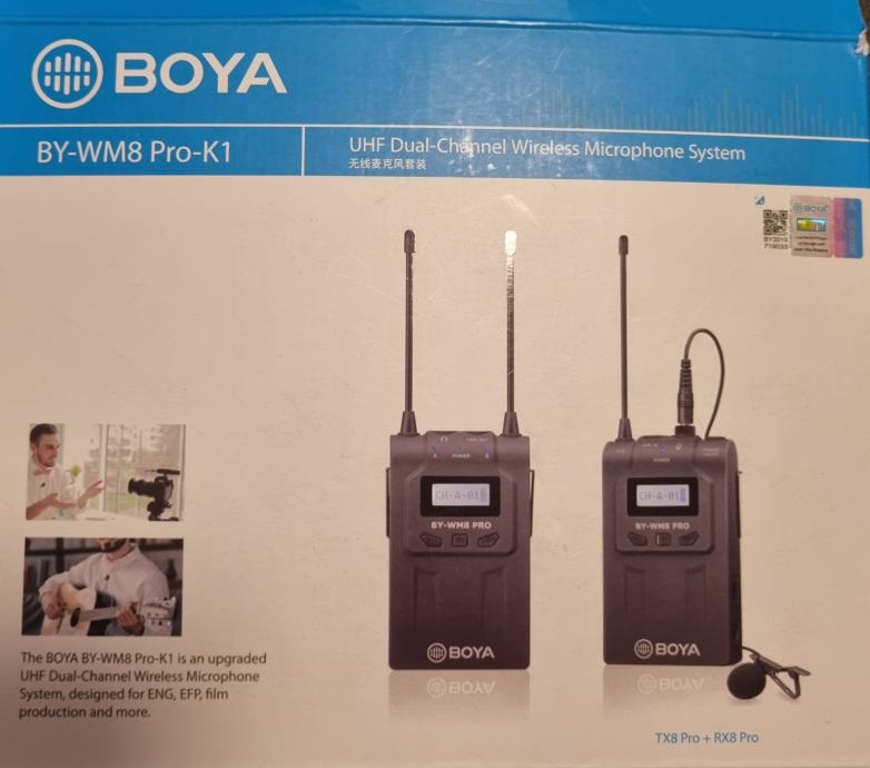 Boya UHF brezžični mikrofonski sistem WM8 (1x RX, 1x TX).