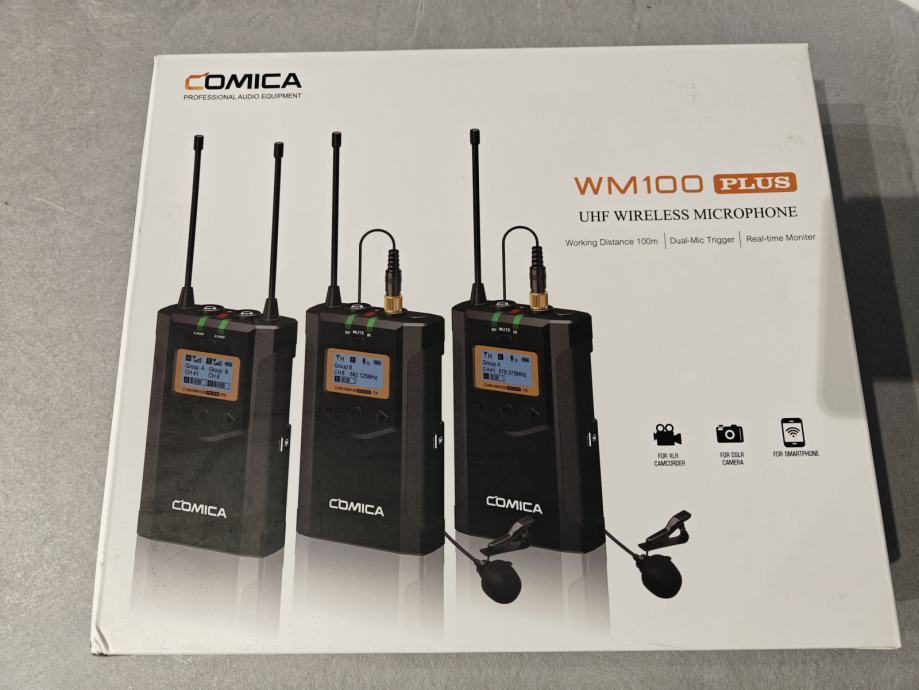 Naprodaj je nerabljen komplet brezžičnih mikrofonov znamke Comica model WM100 PLUS.