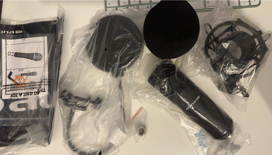 Kondenzatorski mikrofon auna pro cm001, stojalo vonyx in mrežica.