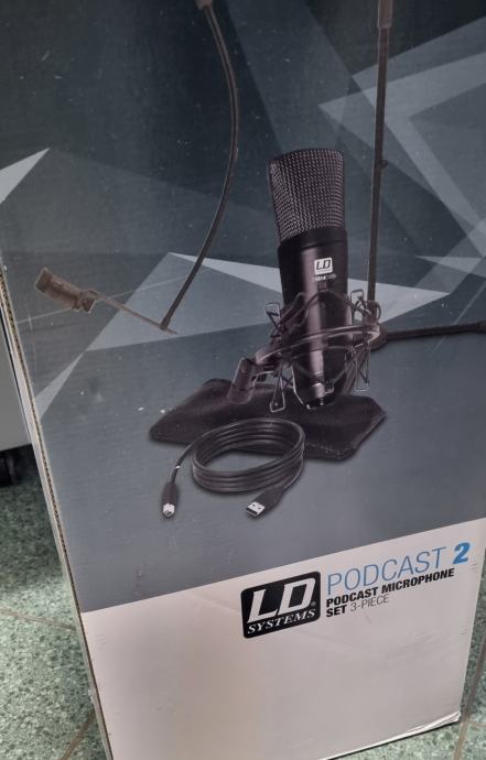 Set vsebuje: 1x USB kondenzatorski mikrofon, 1x pop filter, 1x stojalo za mikrofon z vrtljivo roko, črne barve