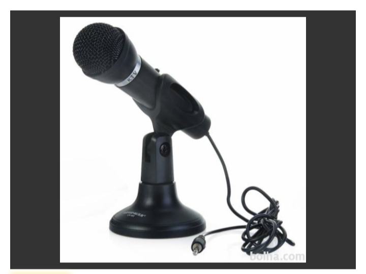 Mikrofon za računalniki (PC in prenosniki) za Skype, Youtube, Chat, Karaoke...kot nov in dela brezhiben. Napaja se prek računalniška priključka 2.5mm ali 3.5mm in USB. Sem v Ljubljani