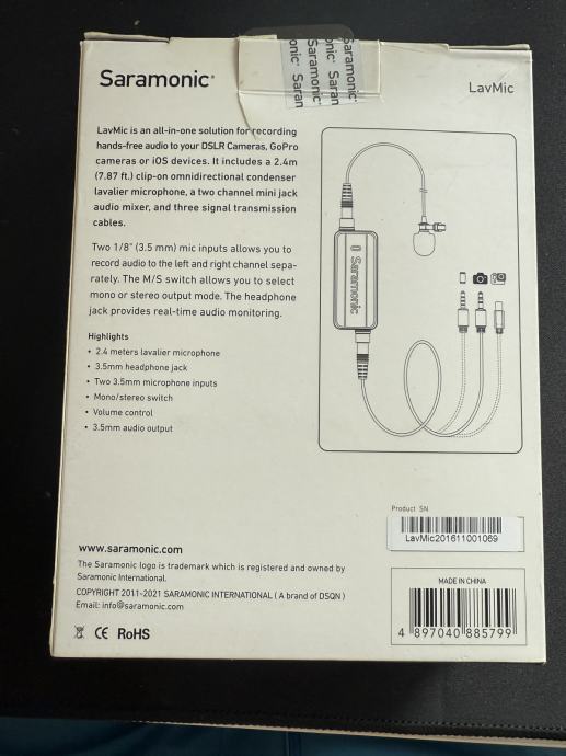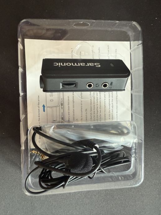 Prodam dvokanalni mixer plus lavalier mikrofon: https://www.filmtools.com/saramonic-lavmic-audio-mixer-with-lavalier-microphone.html