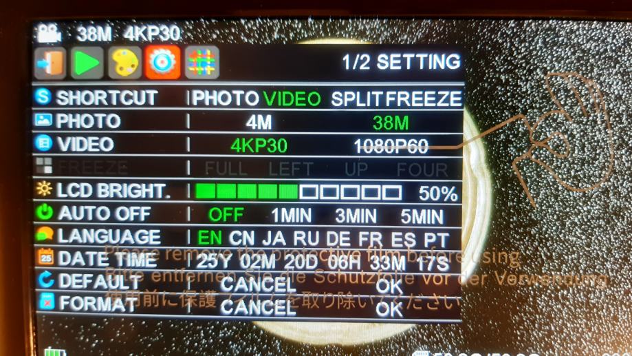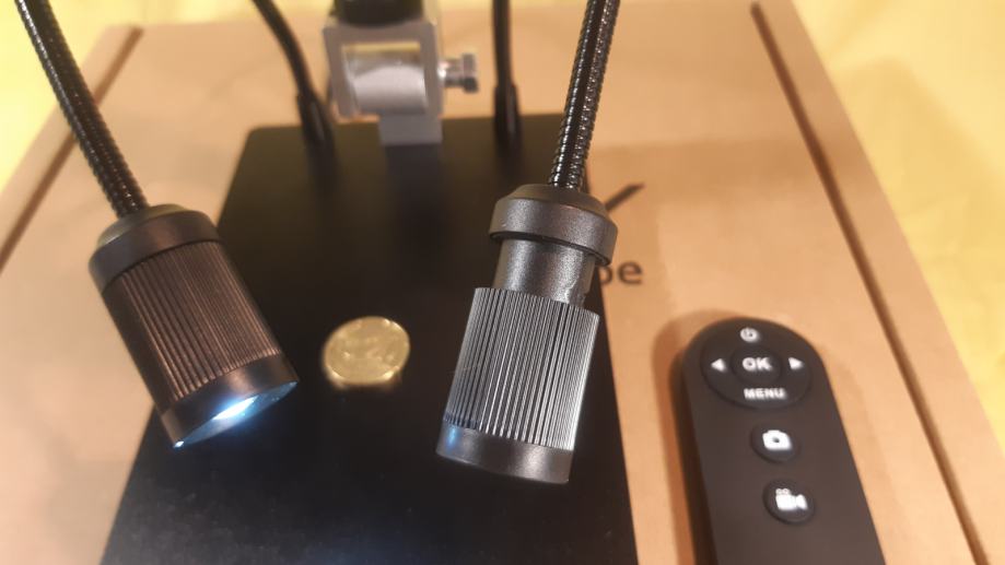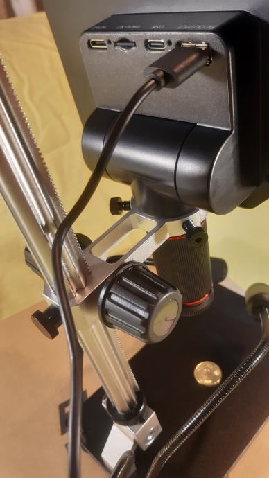 Napajanje preko USB adapterja (5V) + vgrajena Li-ion polnila baterija za neodvisno delo od omrežnega priklopa. Možnost ogleda na hkrati treh zaslonih: LCD mikroskop, PC in monitor/TV *HDMI*.
