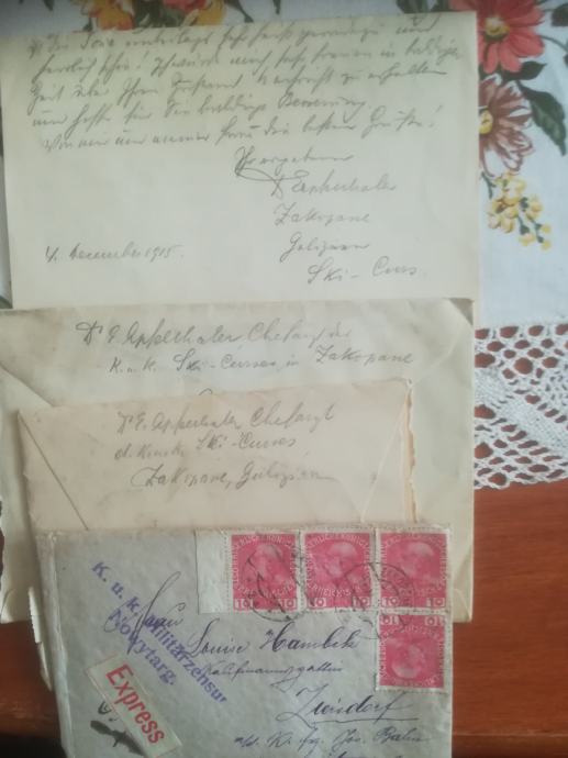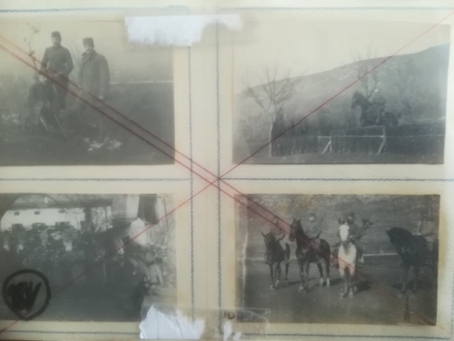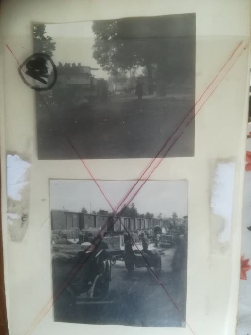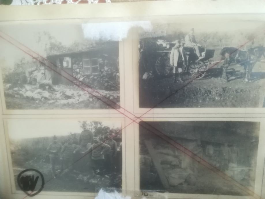 Samo v kompletu je naprodaj album fotografij s soške fronte ter Kamnika z okolico, seveda z vojaško vsebino (131 x) ter 4 x fotografije otrok tega oficirja, 3 x pismo s smučarskega tečaja, 3 x vojaška dopisnica z vojaških pošt 254 in 515 (zadaj 2x fotografija otrok, K. k. 9 cm Posit. Batt. nr. 7/5), 1 x fotorazglednica kraške hiše z vojaki (FP 254, K. k. 9 cm 75./96. Posit. Batt. nr. 3 + žig enote), razglednica Trsta s cenzurnim žigom, 2 x fotografija vojakov na Krasu izrezana iz časopisa in nalepljena v album. Zaradi kopirantov so fotografije prekrite s folijo s črtami. Cena ni nizka, zato prosim, da se javijo samo resni interesenti in to telefonsko.